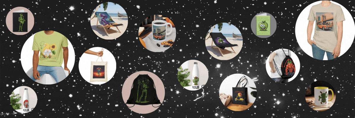 Forget the generic - my "alien" theme isn't just about little green men; it’s about being extraterrestrially unique! Every t-shirt, tote bag, mug, and piece of statement wall art features an original design meant to spark conversations and turn heads.