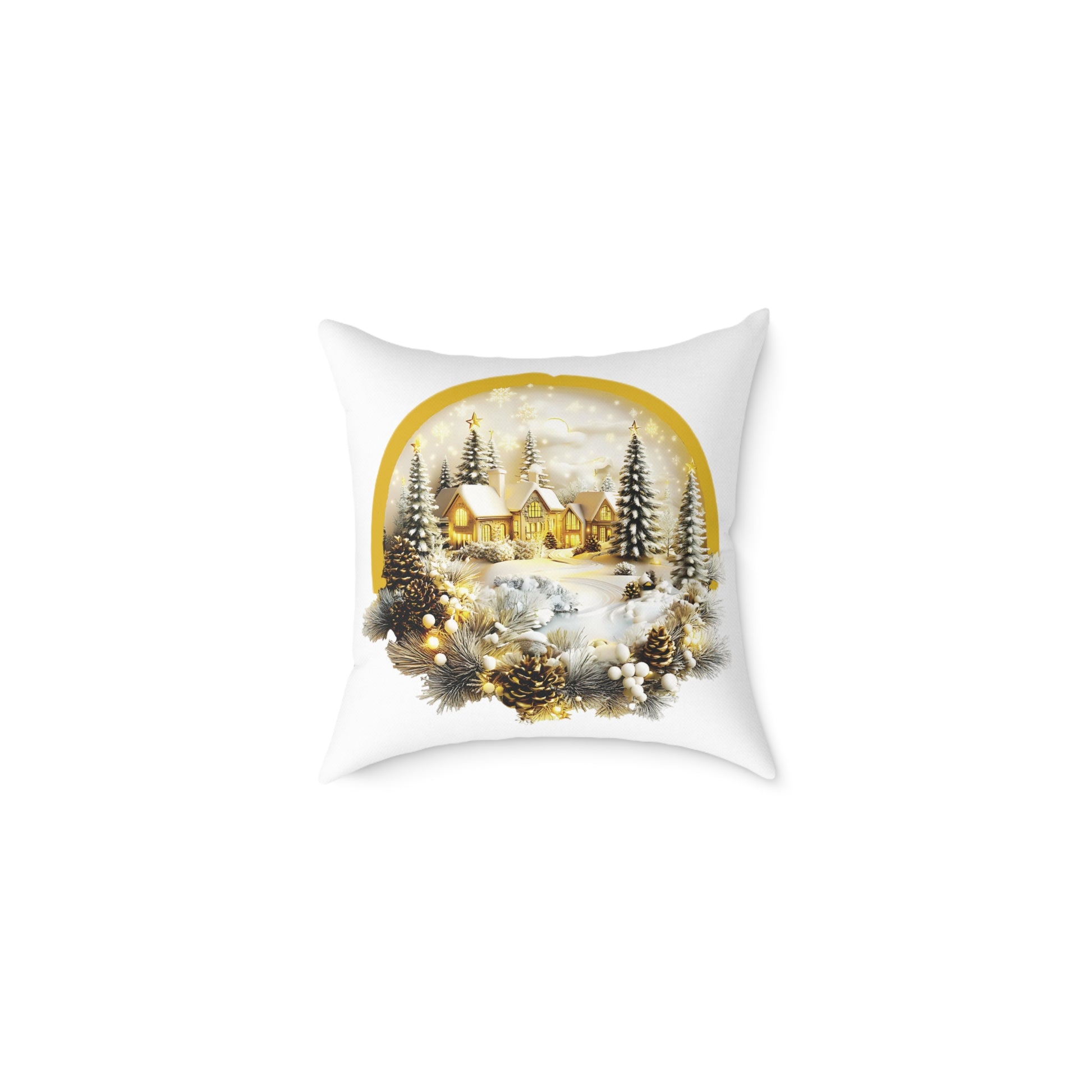 Luxury Golden Winter Village Throw Pillow | Elegant Holiday Cabin Decor