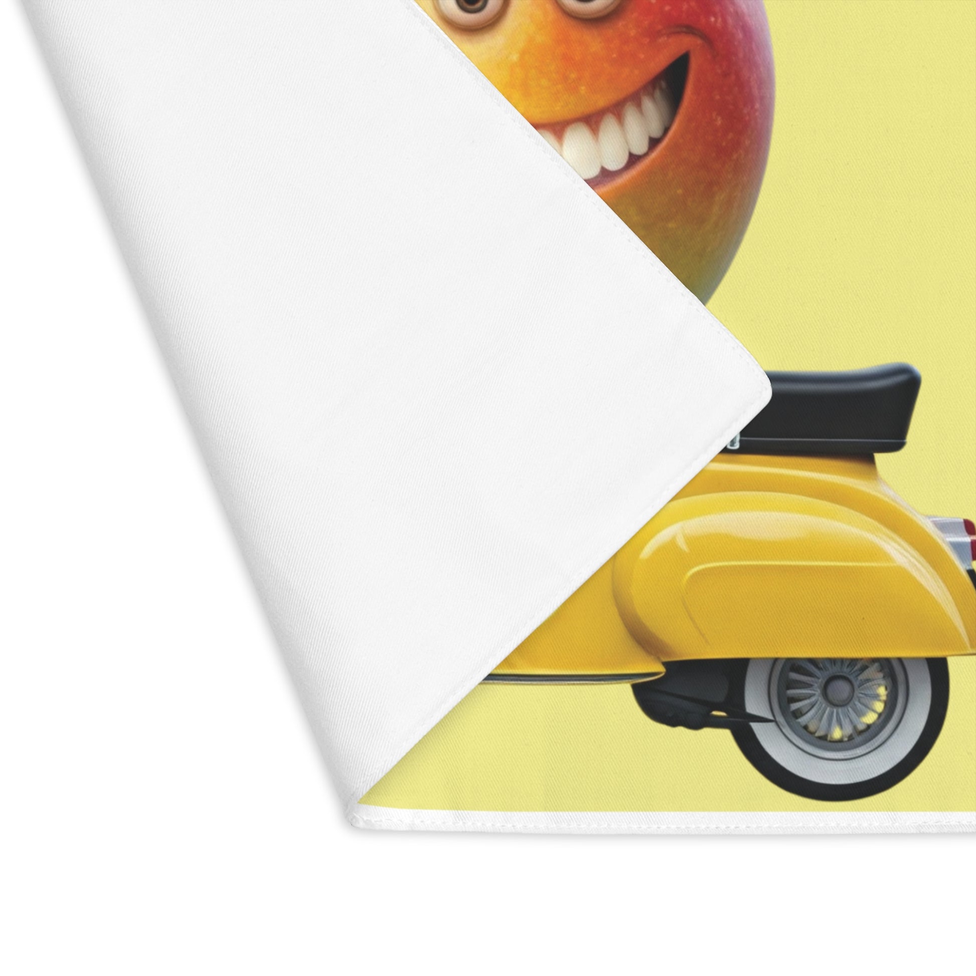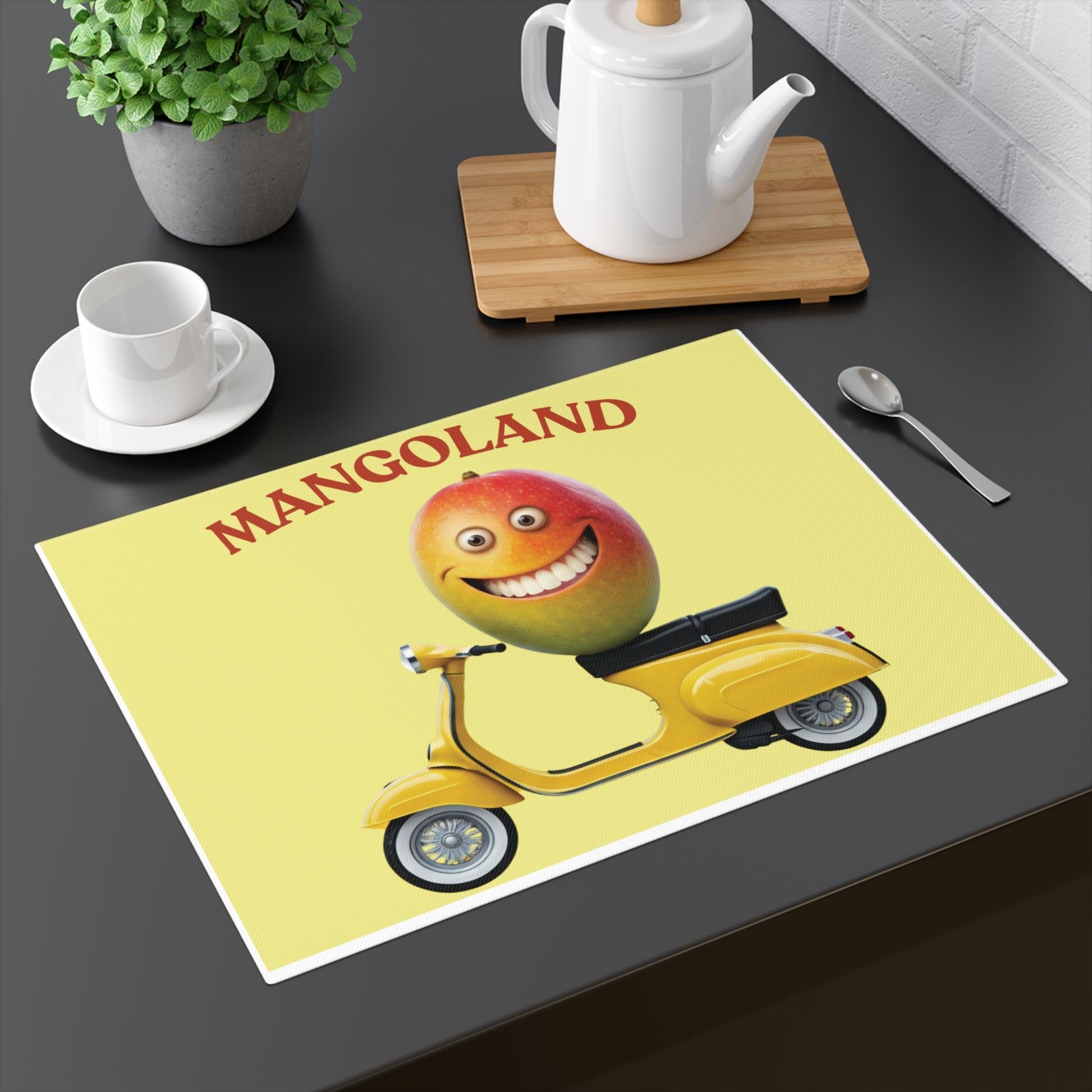 I often find myself dreaming of a place where the sun never sets and the vibe is always "cool." That’s how Mangoland was born. I wanted to capture that effortless, breezy confidence of a mango on a vintage yellow scooter. When I look at this design, I’m reminded that success isn’t always about the sprint; sometimes, it’s about the cruise. I created this placemat to bring a sense of adventure to your dining room. It’s mysterious, where is he going? To a workout? To the beach? To a boardroom? Only you get to decide. Every time I set my glass down on this cotton surface, I feel a little bit of that Mangoland sunshine hitting my face.