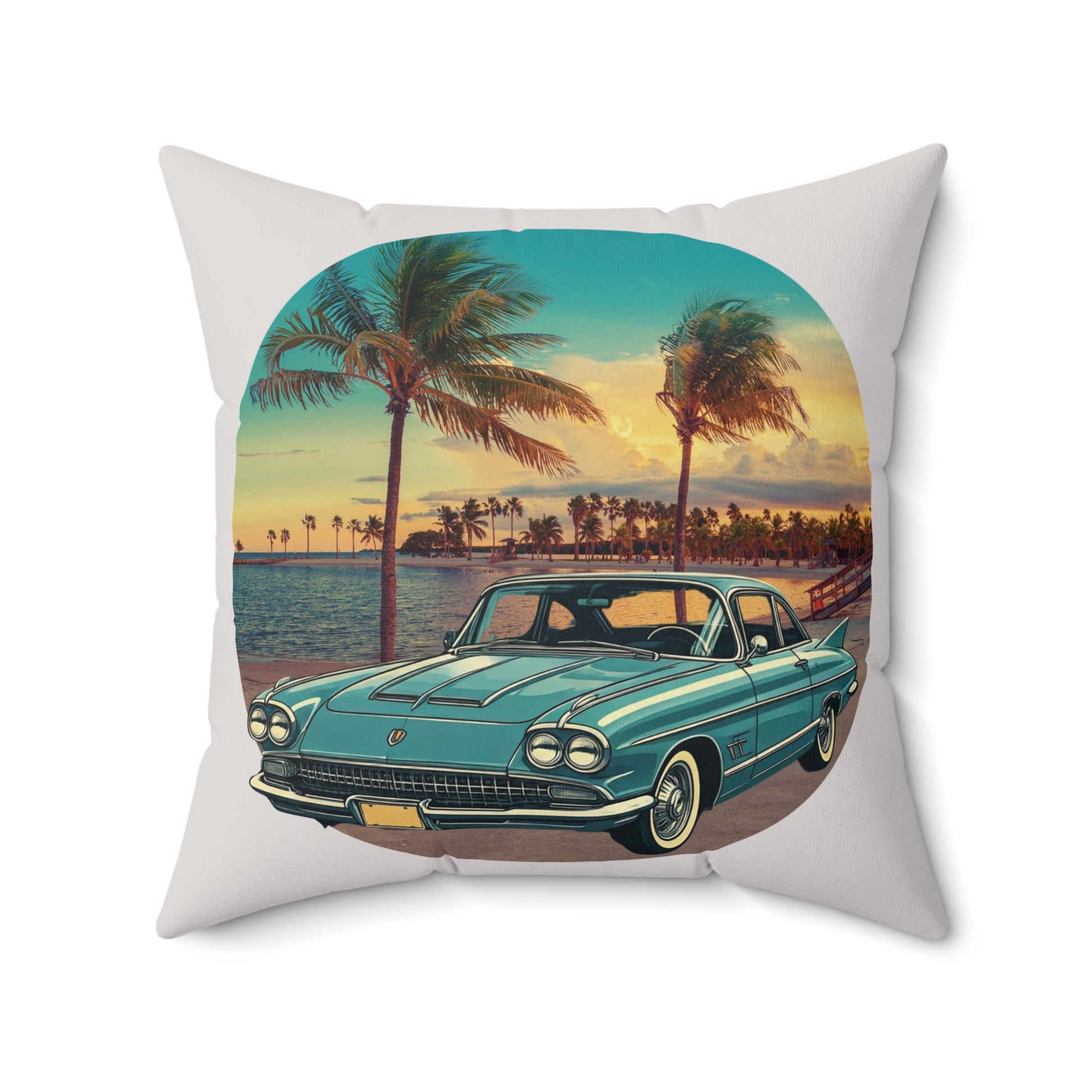I remember the scent of salt air and expensive cigars. The sun was dipping below the horizon in Havana, casting a gold-leaf glow over the chrome fins of my 1950s Cadillac Eldorado Brougham. This pillow isn’t just décor; it’s that exact moment frozen in time. When I lean back against it, I’m not in my living room; I’m cruising the Malecon, the engine humming a low, confident baritone. The turquoise body of the car reflects the Caribbean sea, blending the luxury of the past with the freedom of the open road. I designed this for the dreamers who know that a car isn't just transport—it’s a time machine. Whether it’s on your favorite leather armchair or accenting a minimalist sofa, this piece brings the warmth of a tropical twilight and the prestige of 1950s American engineering into your sanctuary.
