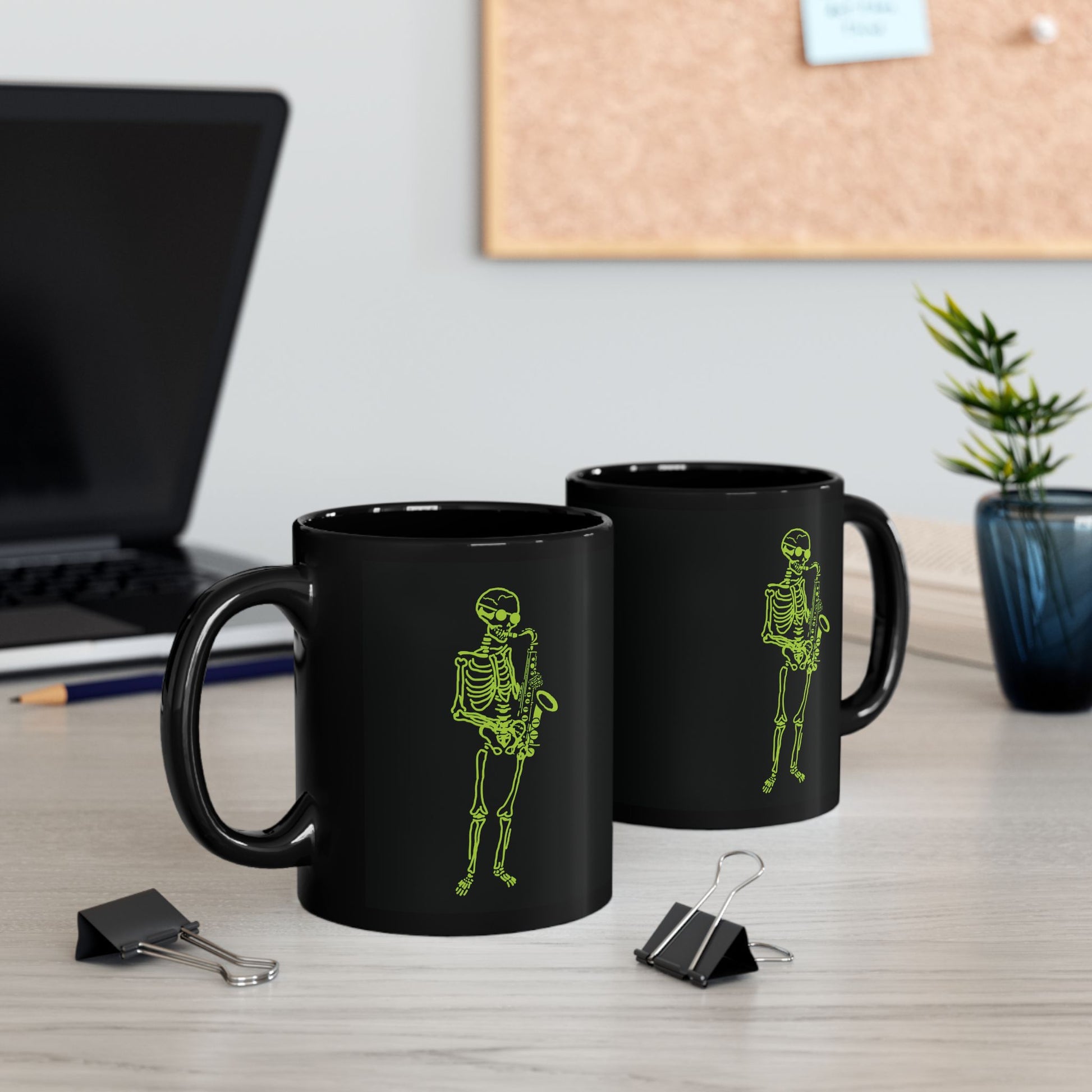 Skeleton Saxophonist Fluo Mug | Rock/Jazz Musician Gift