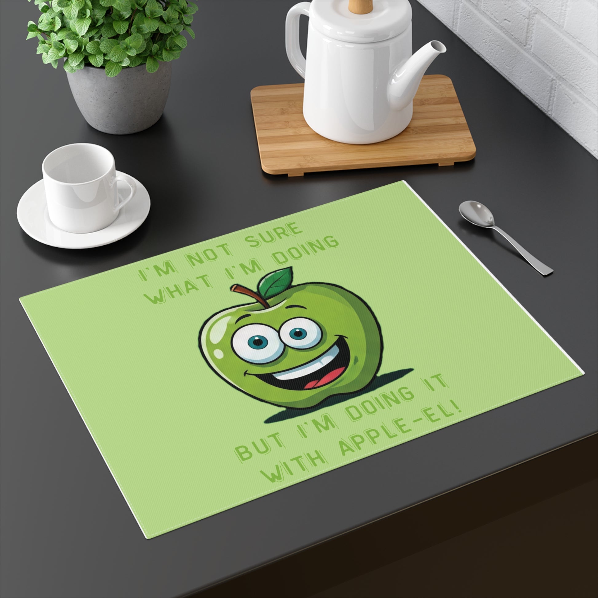 I’ve always believed that the most profound breakthroughs happen in the middle of the mess. You know that feeling, when you’re staring at a daunting to-do list or a grueling workout, and you aren’t quite sure how you’ll finish, but you know you’ll do it with style? That’s the energy I’ve poured into the Apple-el placemat. Every time I sit down for my morning oats, this wide-eyed green apple reminds me that "doing it with Apple-el" is a philosophy. It’s about embracing the vibrant, slightly frantic joy of the hustle. It’s not just a place to set your plate; it’s a portal to a more colorful, energetic version of your morning. I designed this for those of us who find beauty in the grind and magic in the mundane. Let this cotton surface be the foundation of your daily reset.