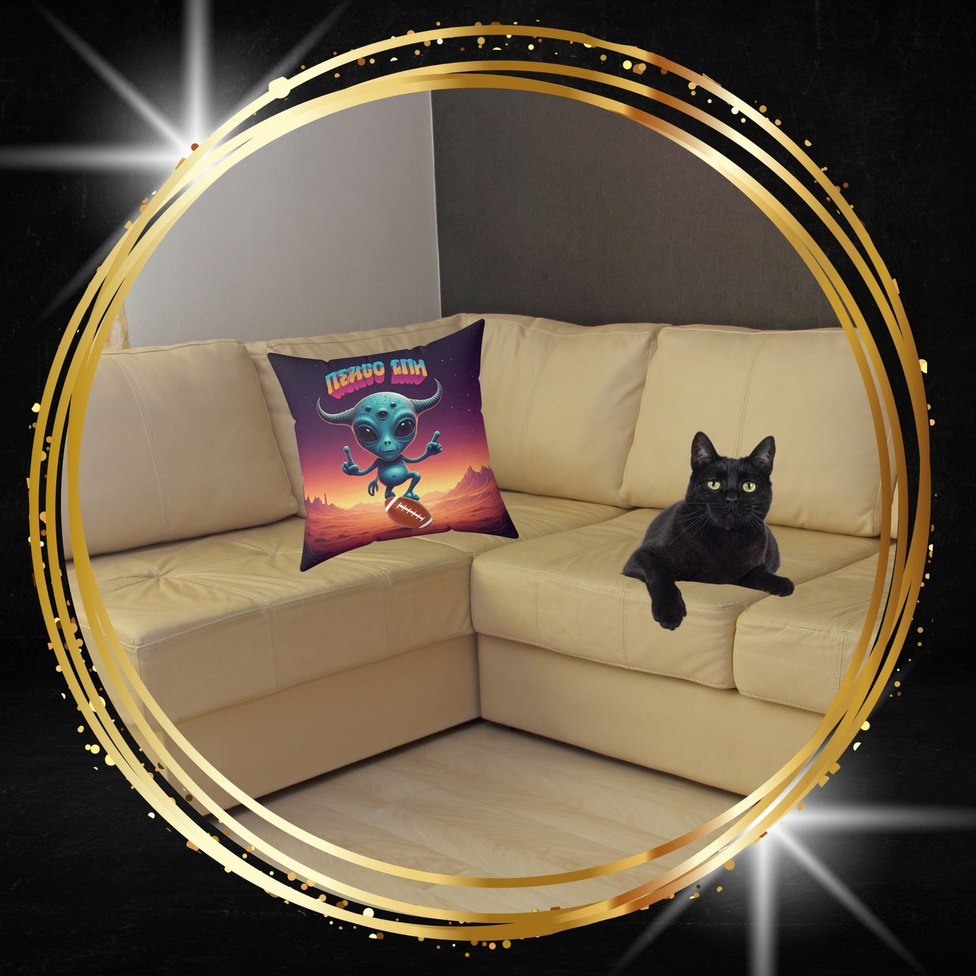 Everything is bigger in Texas, including the expectations for gameday. I swapped my saucer for a pigskin and realized that nothing—not even a black hole—has as much gravity as a Sunday in Dallas. The dust of the stadium, the roar of the crowd, and the neon lights of the scoreboard... it’s the closest thing to a supernova I’ve found on Earth. This pillow is for the fans who live for the "Big Game" and want their decor to show that their team spirit is literally out of this world.