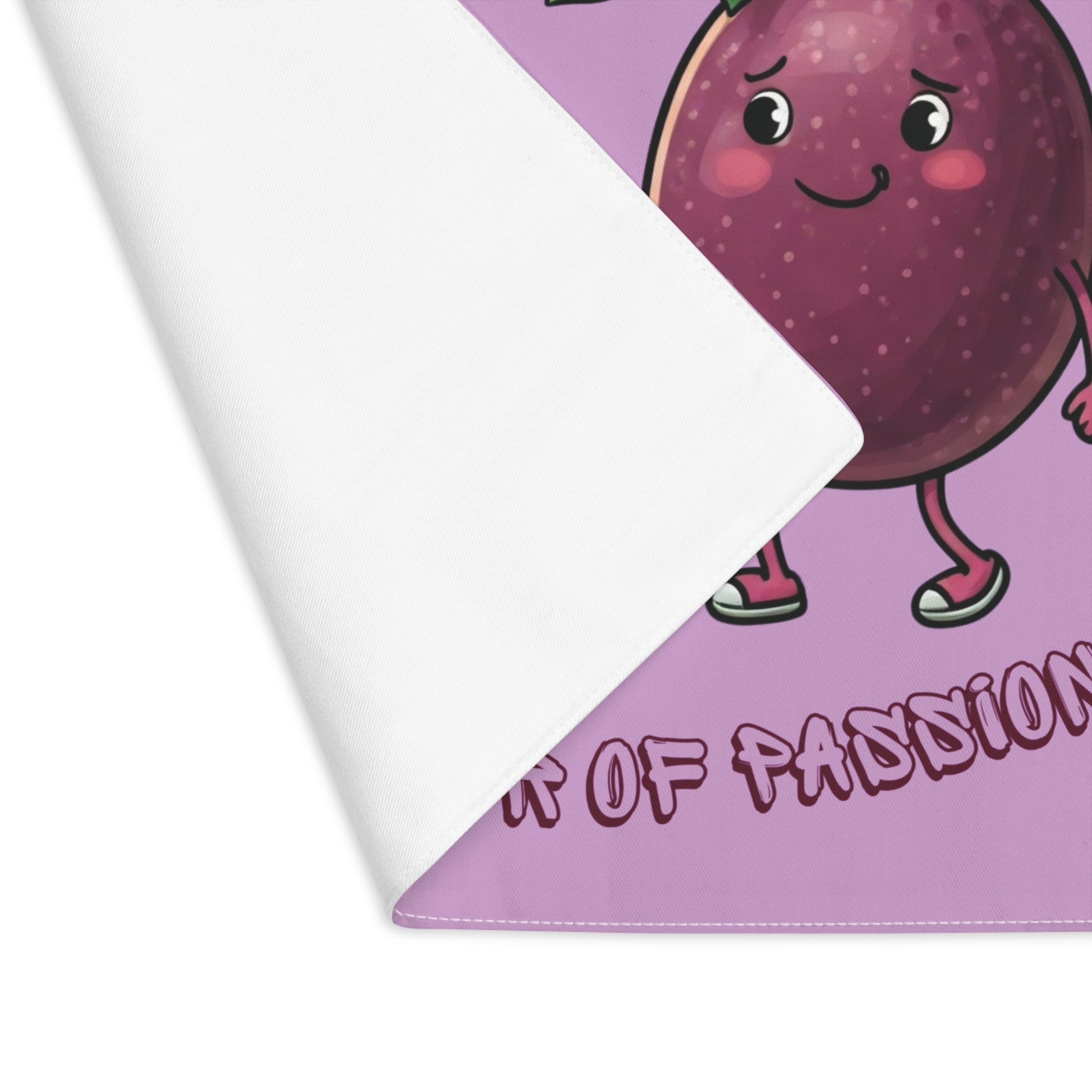 I’ve learned that no journey—fitness or otherwise—is truly solo. There’s a quiet mystery in the way we support one another, a "Power of Passion" that doubles when shared. I designed this piece featuring two passion fruits holding hands because I wanted to celebrate the partnerships that keep us going. Whether it’s your gym partner or your life partner, this placemat is a tribute to that bond. When I share a meal over these mats, I’m reminded that we are stronger together. The deep purple hues and the soulful eyes of these characters bring a touch of emotional depth to your kitchen, wrapped in a high-end cotton finish.