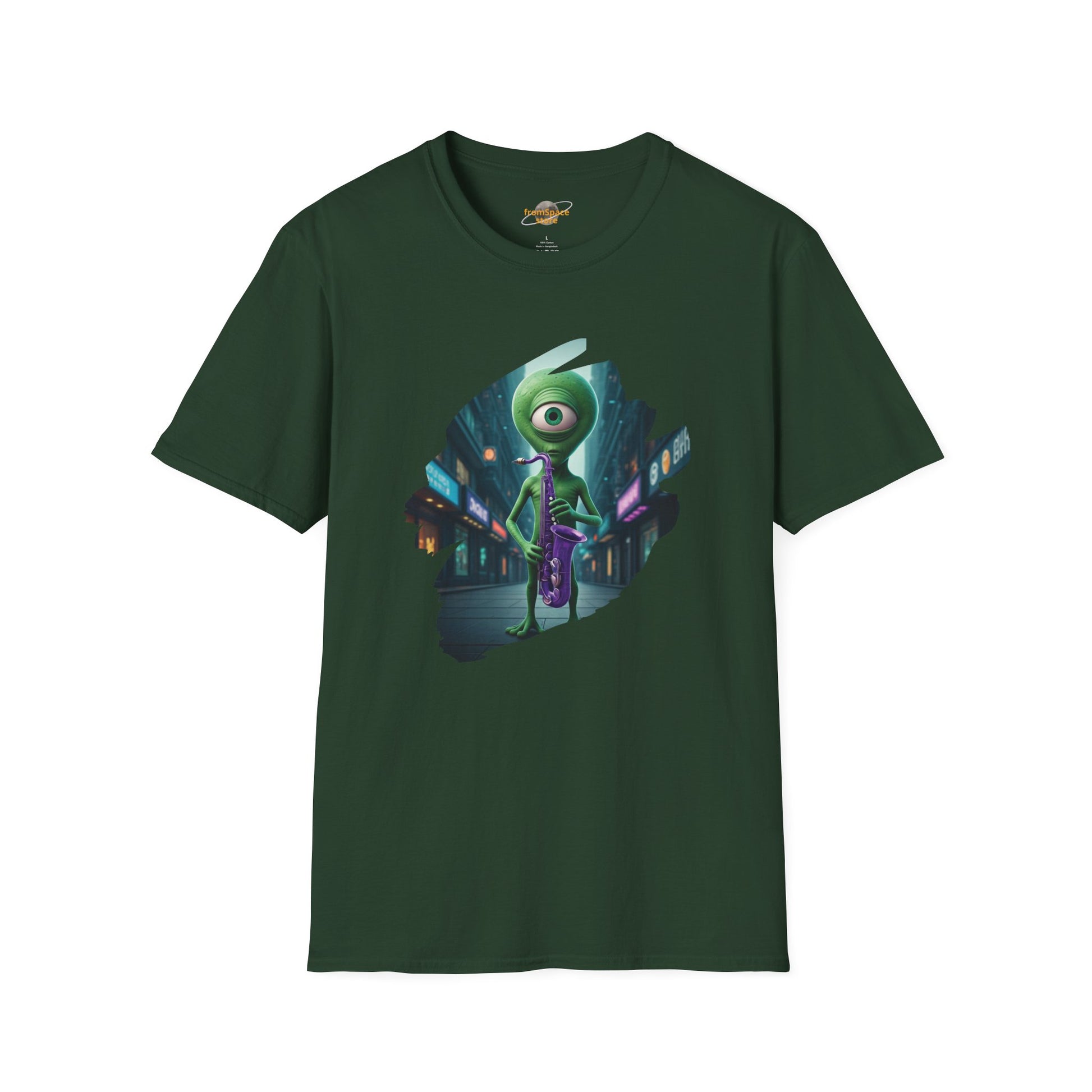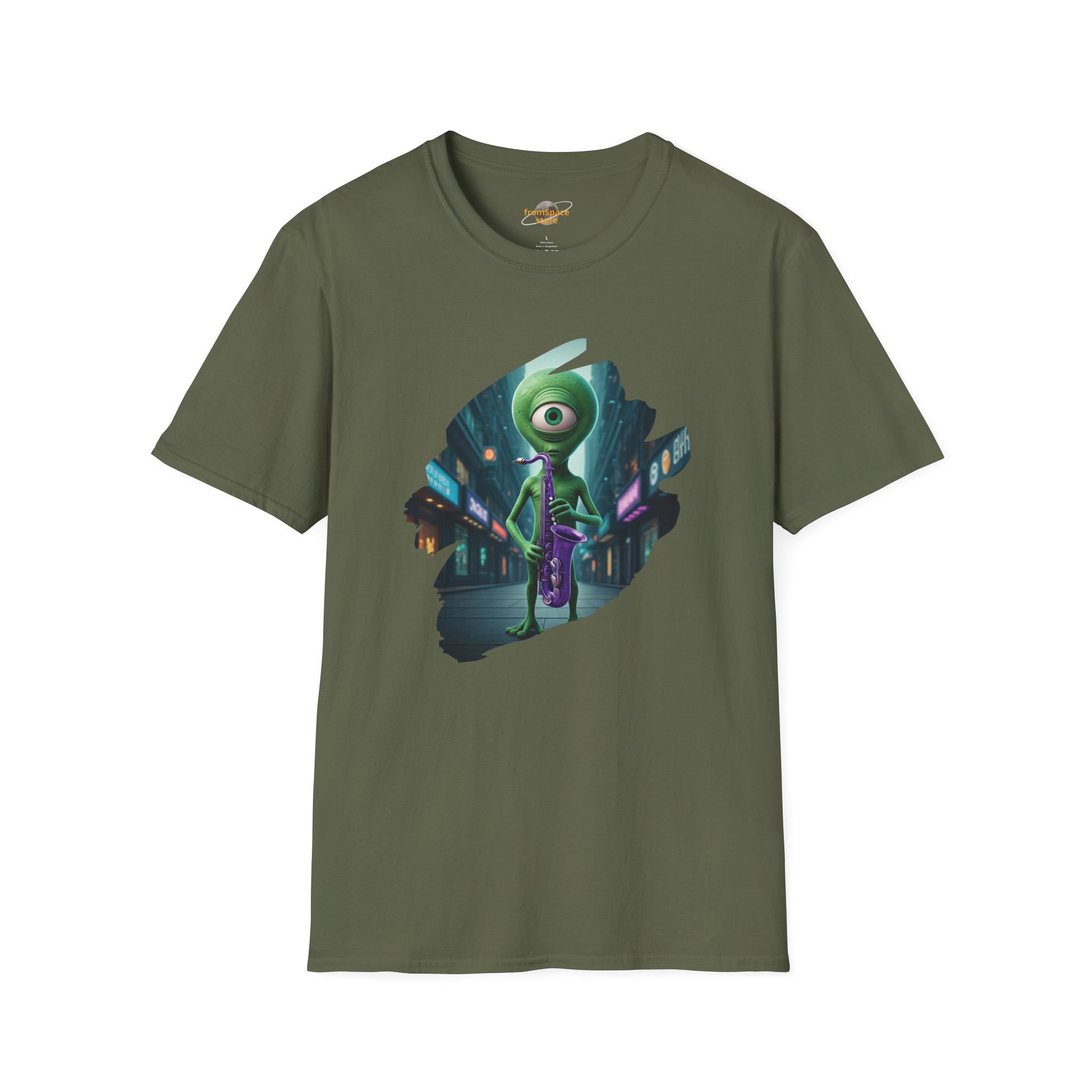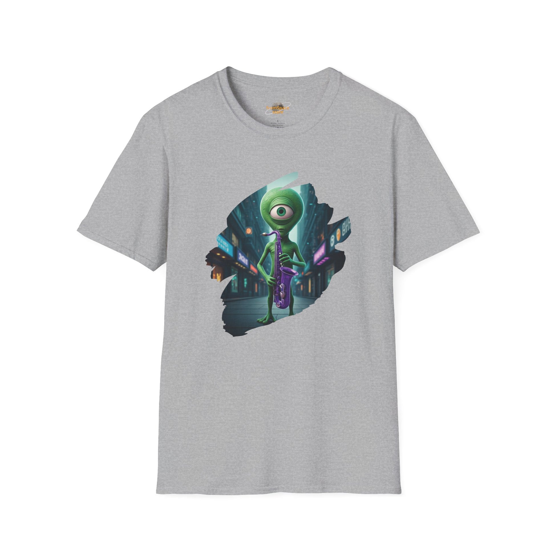 Alien Saxophone Player Unisex T-Shirt: Sci-Fi Vibes