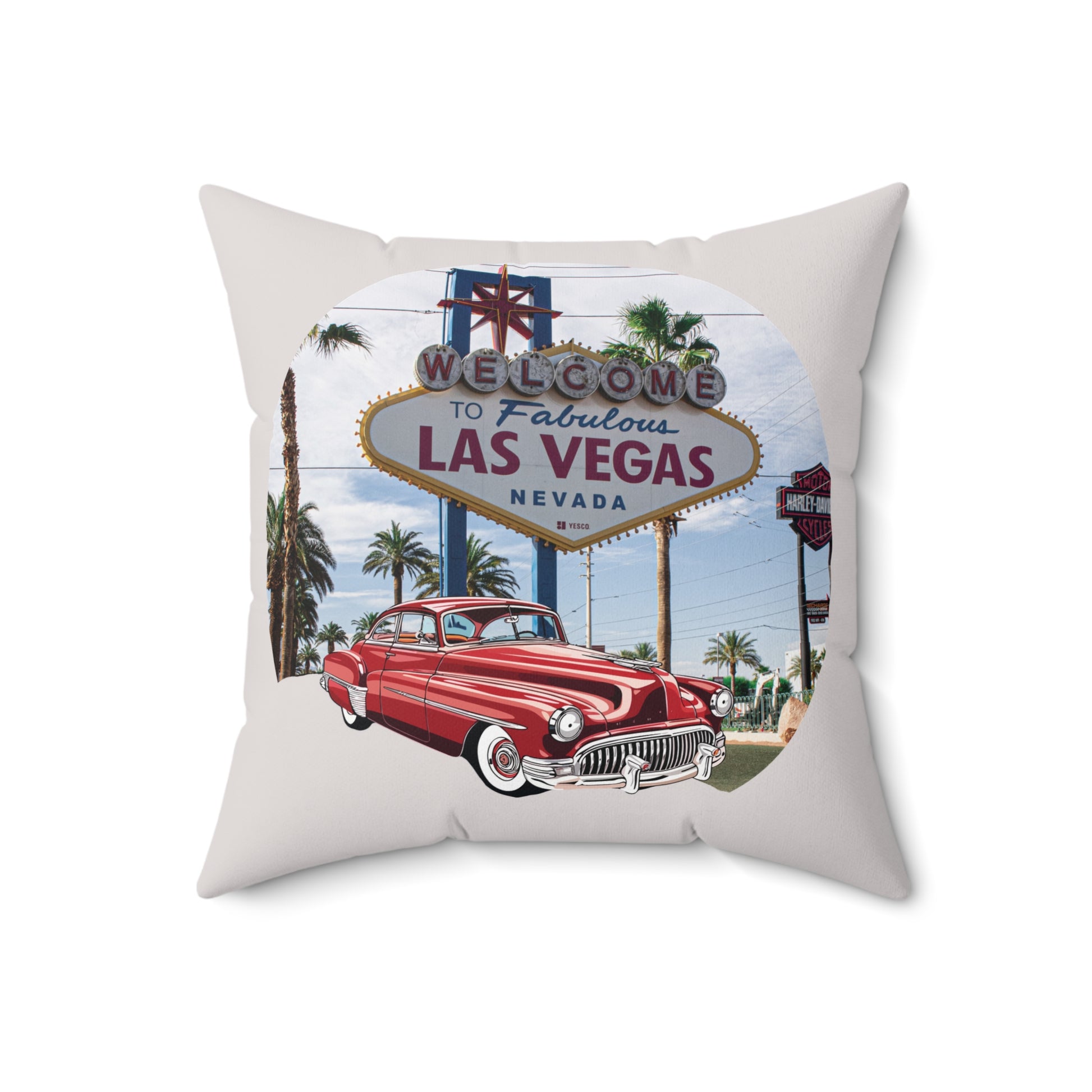 The neon lights of Vegas always feel like a fever dream. I remember pulling up to the "Welcome to Fabulous Las Vegas" sign in a cherry-red Buick Roadmaster, the chrome glinting under the desert stars. This pillow is a slice of that Americana magic. It’s vibrant, loud, and full of life. I wanted to capture the sheer optimism of the 1950s—the wide-open roads, the bright signs, and the cars that looked like spaceships. This isn’t a pillow for a boring room; it’s for a space that celebrates personality and the thrill of the jackpot.